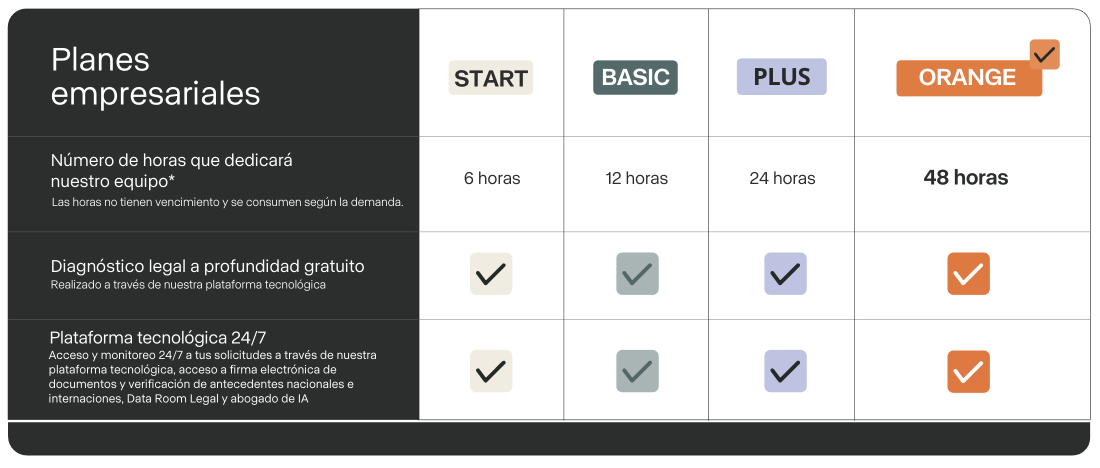 No. El diagnóstico legal profundo es un beneficio exclusivo por tomar una de nuestras bolsas de horas. No se descuenta de tu plan y te permite tener una visión clara del estado legal de tu empresa desde el inicio.